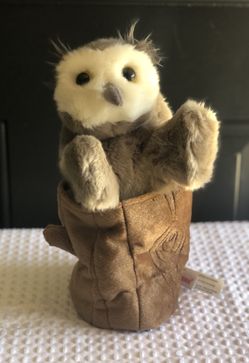 AURORA HORNED OWL in Tree Stump Plush 11” hand puppet realistic- EUC$20Carrollton, TX