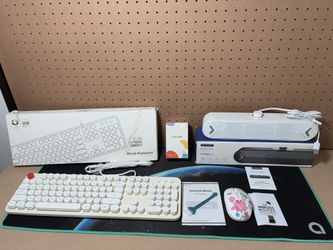 White Wired Keyboard, Wireless Mouse, & Speaker Bundle $19Phoenix, AZ