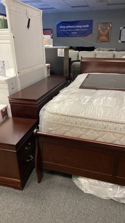 Queen Cherry sleigh bed with mattress set $999 6pc free mattress set must sell tax time special was $1899$999Menifee, CA
