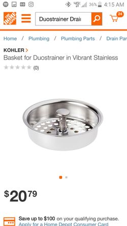 KOHLER Duostrainer Drain Basket in Polished Chrome$10Norcross, GA