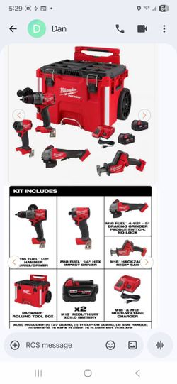M18 FUEL 18 lithium-Ion ,Brushless Cordless Combo Kit w (2) 5.0 Battery, Charger And Pack Out Tool Box (4-tool)$900Carlsbad, CA