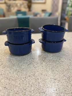 Set of four blue ceramic bowls with handles. 4 Von Pok and Chang Blue Speckled Stoneware Chili Soup Bowls $18.$18Key Largo, Florida