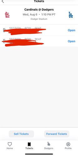 Dodgers Vs Cardinals 8/6$200La Verne, CA