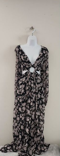 Bebe Floral Print Deep V-neck Sheer Long-Sleeve Maxi Dress in Size L Color: Black/ Pink $65Newark, DE
