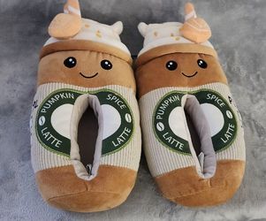 Feetmoji Plush Pumpkin Spice Latte Slippers, Size 9/10 Color: Brown/Cream $20Newark, DE