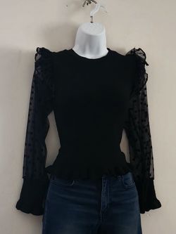 Maeve Sheer Polka Dot Ruffle Lace Blouse from Anthropologie Color: Black Size: S$40Newark, DE