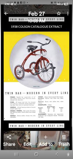 1930s COLSON ZYPHER 'THE400' TRIKE$400Junction City, KS