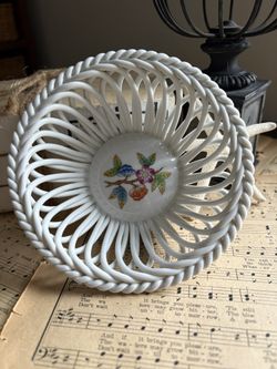 VINTAGE HEREND | hand painted floral bouquet white woven floral porcelain Hungary Christmas bride mom gift, forever basket Fall host gift$30West Palm Beach, FL