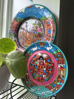 2 Mexicana Plates Bright Color Handmade Painted Terra Cotta Clay Pottery 9.5” And 12”$65Riviera Beach, FL