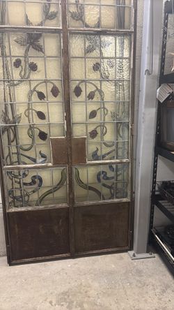 Antique Stained Glass Double Door Paneled Wrought Iron Art Nouveau Architectural Style 7’ X 41”$1,500Riviera Beach, FL