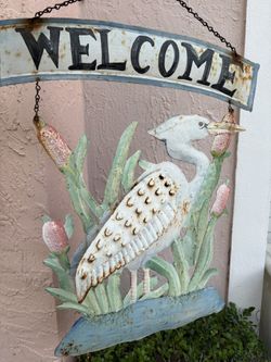 Rustic Steel Welcome Sign Hanging Bird Cutout Rust Metal Nautical Home Decor 24”x18” Garden Art$30West Palm Beach, FL