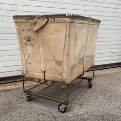 Antique Large Laundry Cart Linen Steel On Wheels Shamrock Madison Indiana Sailcloth Leather Trim 31”x30”x21”$200West Palm Beach, FL