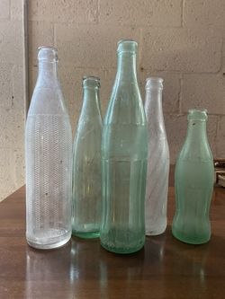 5 Vintage Antique Glass Bottles Soda Pop Coca Cola Frosted Aqua Blue Glass Rustic Vase 8”-11”$40West Palm Beach, FL