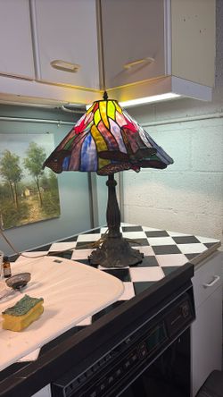 TIFFANY STYLE DRAGONFLY STAINED GLASS TABLE LAMP Some Broken Glass Pieces 25” x 19”$150Riviera Beach, FL