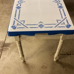 Antique White Blue Enamel Top Kitchenette Table 40 X 24“ Top 32 Inch height Expandable Turned Legs Cottage Coastal Interior Design$300West Palm Beach, FL