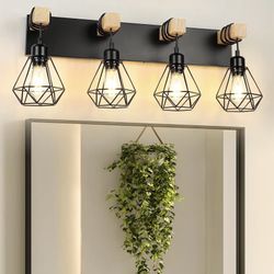 4-Light Vanity Light for Bathroom, Farmhouse Wood Vanity Light Fixtures Over Mirror, Metal Lampshade for Bathroom, Hallway, Living Room 4262$55Katy, TX