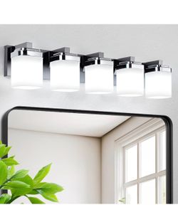 Guliaofo 5-Light Bathroom Light Fixtures, Chrome Vanity Lights for Bathroom Mirror Lamp with Milky White Square Glass Shade, E26 Base Modern Wall Scon$120Katy, TX