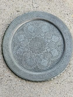 Large Antique Persian Hand Engraved Silverized Copper Plate Gombad Design 15.25 Inches$75Niles, IL