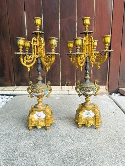 Pair of Sèvres Porcelain Ormolu Gilt Bronze Celeste Blue Candelabra Candlesticks$695Niles, IL