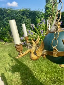 Stunning Vintage French Empire Style Chandelier - Green Tole & Brass Swan Motif$995Niles, IL