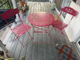 Red Metal Bistro Table And Chairs $70Orlando, FL