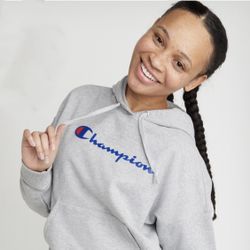 Champion Womens Powerblend Grey Fleece Hoodie Script Logo Pull-Over$19Peoria, IL