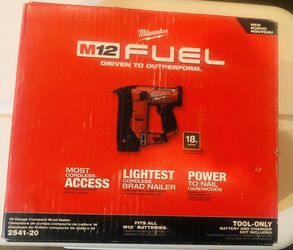 Milwaukee M12 FUEL 12-Volt Lithium-Ion Brushless Cordless 18-Gauge 1-1/2 in. Compact Brad Nailer (Tool Only)$235Vista, CA