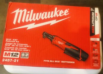 Milwaukee M12 12V Lithium-Ion Cordless 3/8 in. Ratchet Kit with One 1.5 Ah Battery, Charger and Tool Bag $200Vista, CA