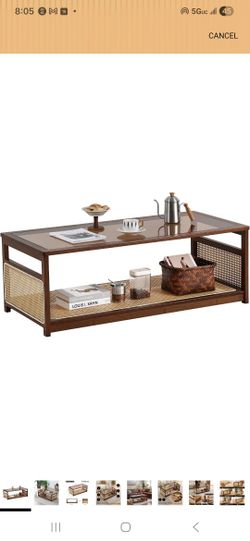 Rattan Coffee Table with Glass Top 2 Tier Storage Shelf Walnut 47.5 Inch$75Valrico, FL