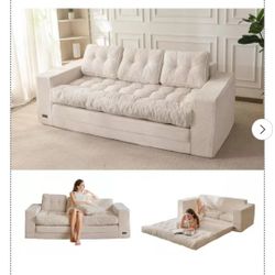 Beige Convertible Sofa Bed Pull Out Sleeper Couch 3 Seater with Pillows$180Valrico, FL