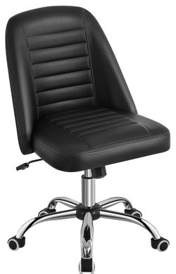 2 Chairs Of Yaheetech Mid Back PU Leather Armless Desk Office Chair, Modern Vanity Chair with Rolling Wheels, Metal Base Black $100Strongsville, OH