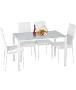 FDW | 7-Piece Dining Table Set | White | Glass Kitchen Table with 4 Upholstered Chairs and Faux Leather Cushions | Space-Saving and Modern Design | fo$100Strongsville, OH