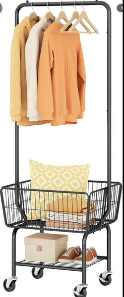 Tajsoon Laundry Cart with Hanging Rack, Metal Laundry Basket with Wheels, Laundry Hamper with Storage Basket and Shelf, Rolling Laundry Cart with Whee$30Strongsville, OH