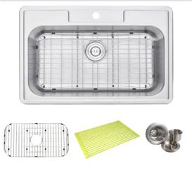 Topmount Drop In Stainless Steel 33 in. x 22 in. x 9 in. Deep 1 Faucet Hole Single Bowl Kitchen Sink with Accessories$115Phoenix, AZ
