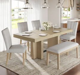 Inman 6-Piece Natural Plus Beige Extendable Wood Top Dining Table Set with Bench and Linen Upholstered Chairs$635Phoenix, AZ