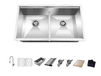 Zero Radius 33 in Undermount 50/50 Double Bowl 18 Gauge Stainless Steel Workstation Kitchen Sink with Spring Neck Faucet$285Phoenix, AZ