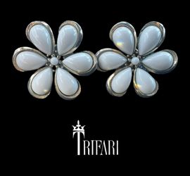 Beautiful Vintage Crown Trifari White Milk Glass Large Flower Earrings$34Orange Park, FL