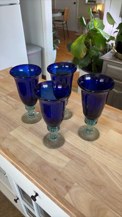 Set of 4 Heavy Hand-Blown Cobalt Blue Goblets - 9" Artisan Glassware$75Chattanooga, TN