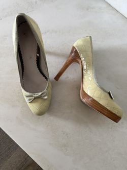 Chic yellow heels with quilted design. Adorned with a cute bow. Perfect for stylish outings.$20Pico Rivera, CA