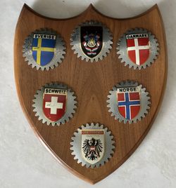 Warm Wooden Shield Wall Decor with Emblems and Metallic Accents 3 Wooden Decor$300Pico Rivera, CA