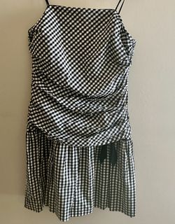ABS Allen Schwartz 100% cotton gingham strapless midi dress Gingham pattern vary in season. Pleated balloon skirt. Dress has only been worn once and $65Pico Rivera, CA