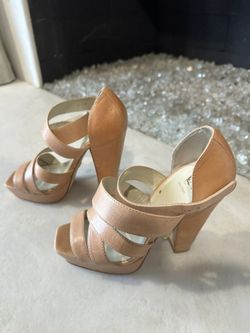 Velvet Angel Brand: Peachy Tan High Heeled Sandals with Chunky Heel and Straps$20Pico Rivera, CA