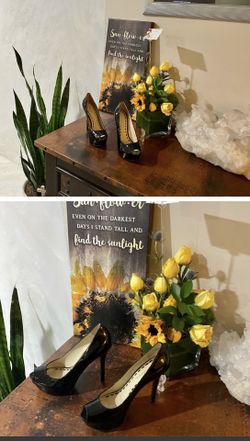 Pre-owned Like New Condition. ENZO ANGIOLINI. Black Pattens Leather Platform Heels 5” Peep Toes Shoes in Size 7.5”. No box.$20Pico Rivera, CA