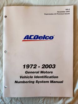 AcDelco 1(contact info removed) GM Vehicle Identification Manual $15Mesa, AZ