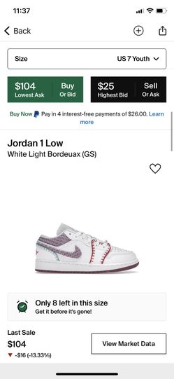 Jordan 1 Low White Light Bordeaux (GS) size 7$80Atherton, CA