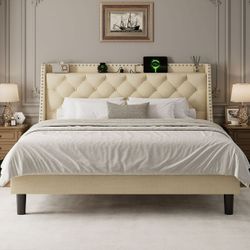 King Bed Frame with 16" Deluxe Wingback & Charging Station, Upholstered Platform Bed with Button Tufted Storage Headboard$159Montebello, CA