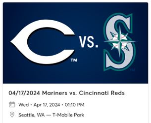 Cincinnati Reds at Seattle Mariners (Section 121, Row 21, on the aisle!)$15Seattle, WA