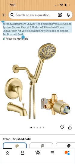 gotonovo Bathroom Shower Head Kit High Pressure Combo System Shower Faucet 6 Modes ABS Handheld Spray Shower Trim Kit Valve Included Shower Head and H$40Dover, DE