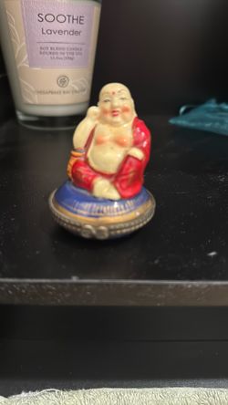 Vintage Porcelain Hinged Box Buddha sitting on Blue Pillow$30Murrieta, CA