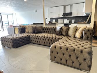 Dark Mink Tufted U-Shaped Velvet Sectional 8 Pillows Included CLEARANCE $1,700Houston, TX